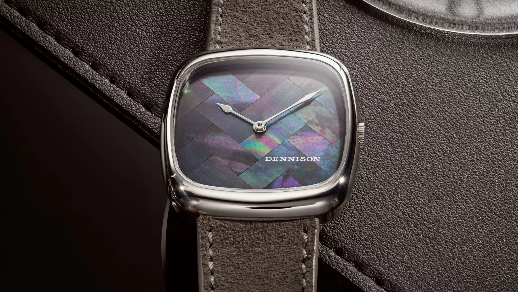 As Dennison has done since its relaunch, we didn’t want to disrupt this dial’s elegance, and so decided to forgo any markings or furniture, with only the Dennison logo printed on the crystal in the bottom right corner, floating above the exquisite MOP. We have also kept the handset the same, with those lancet hands that recall the origins of the Dennison brand and help bring a sense of historical significance to the watch.