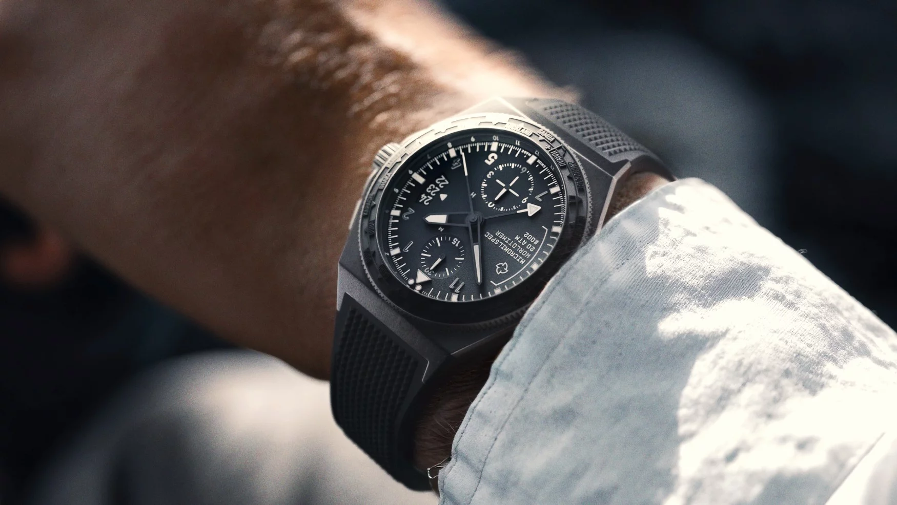 The Micromilspec Pilot Worldtimer will be available as part of the brand’s permanent collection, limited to 75 units per year. Price: €3,500
